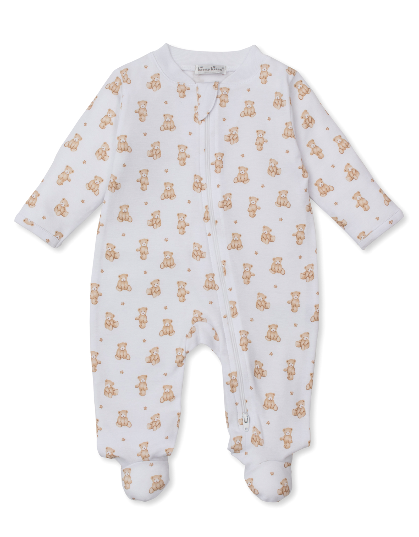This cozy footie is as sweet as it is soft, featuring an allover brown bear print that brings playful charm to baby’s everyday wardrobe.