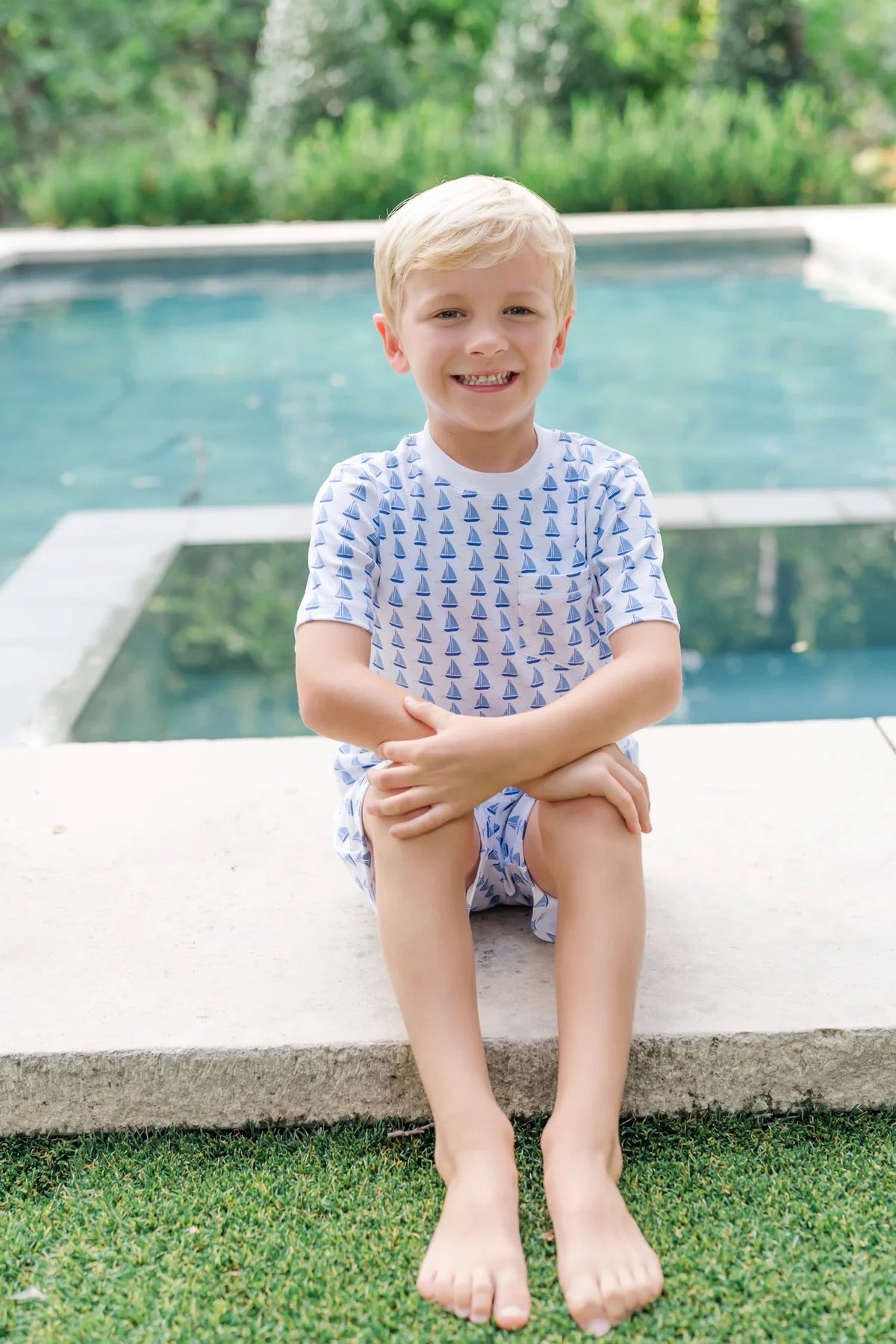 Pima cotton boys' pocket t-shirt and matching play shorts. Made from 100% Peruvian Pima Cotton. This item is not intended for sleepwear.