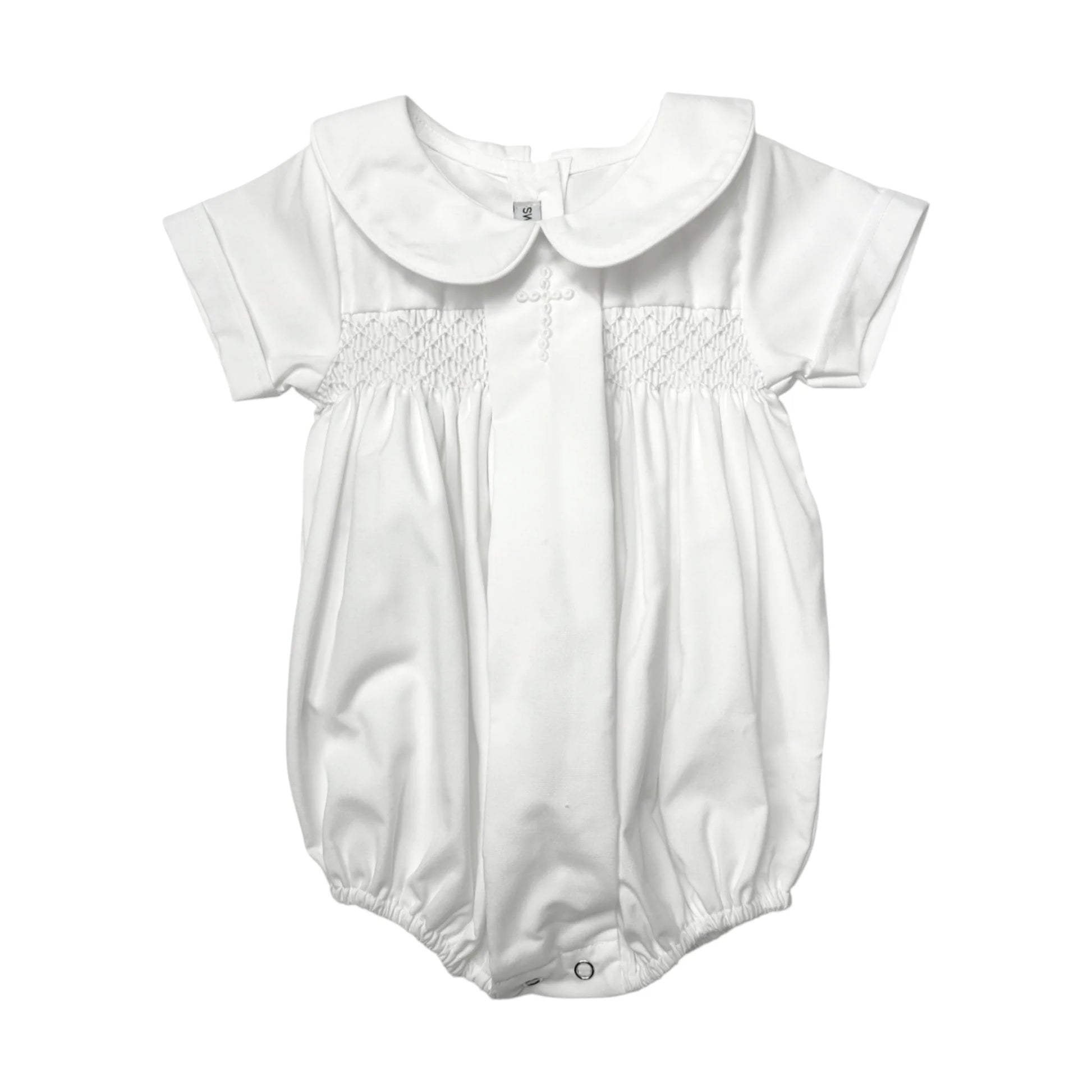 Simple, classic, and full of meaning, this white bubble features a delicate cross detail for a timeless, traditional look. Crafted from soft, breathable fabric, it keeps little ones comfortable while offering a beautifully polished finish. Designed with easy snap closures for quick changes, it’s perfect for baptisms, christenings, and other special milestone occasions.