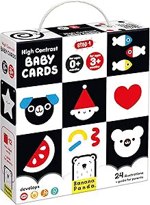 High-contrast flash cards for newborns stimulate visual development, boost concentration, and encourage bonding through guided parent-child play. Made with safe, food-grade inks and thick, durable cardboard, the set comes in a handy carry box for easy storage and travel.