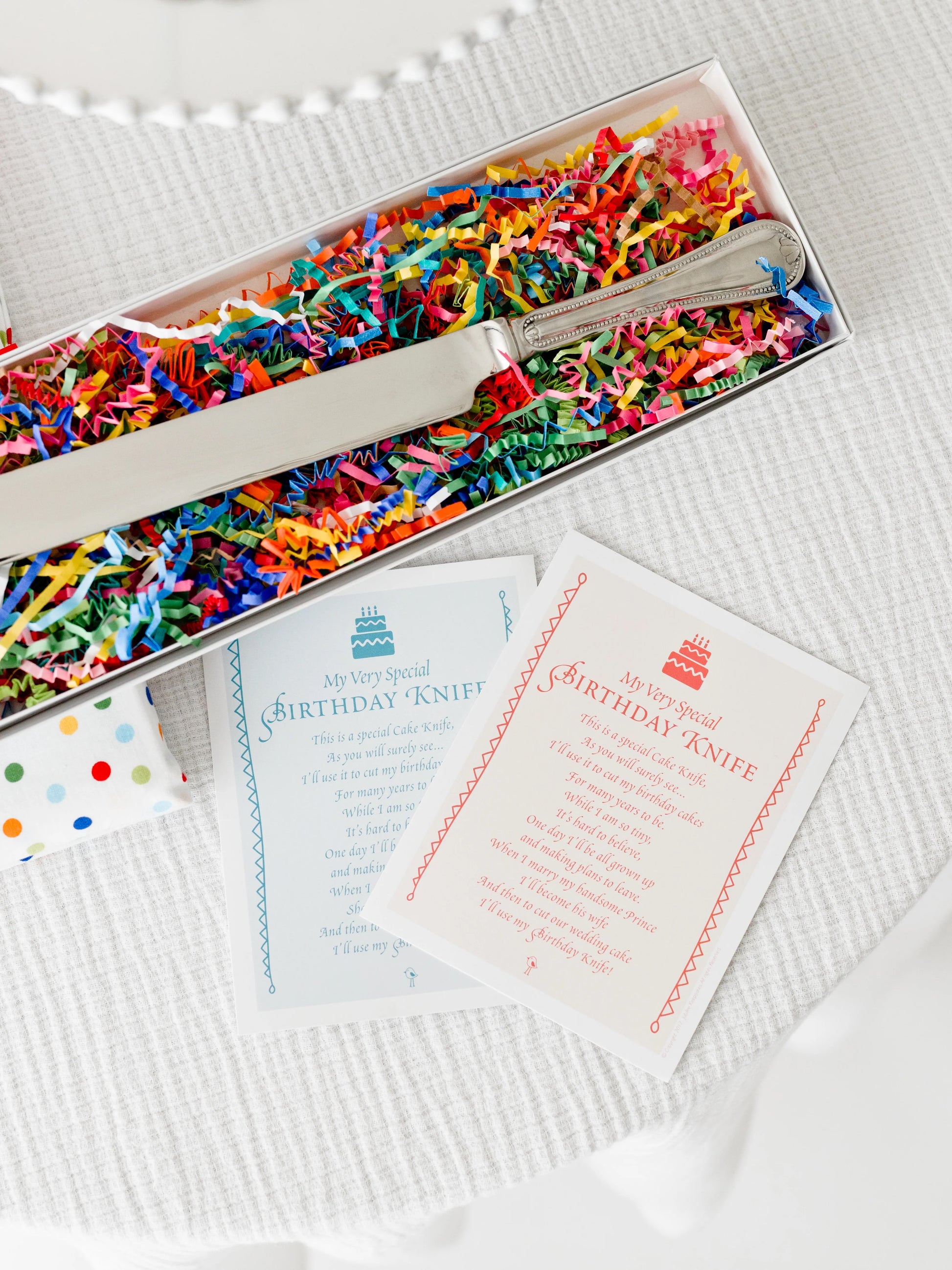 Introducing the Blue Seersucker with White Ribbon Birthday Knife, a cherished part of our Birthday Knives Collection. This knife is crafted to make birthday celebrations unforgettable, ensuring each cake-cutting moment is as special as the birthday it celebrates. It's a delightful addition to any birthday tradition.