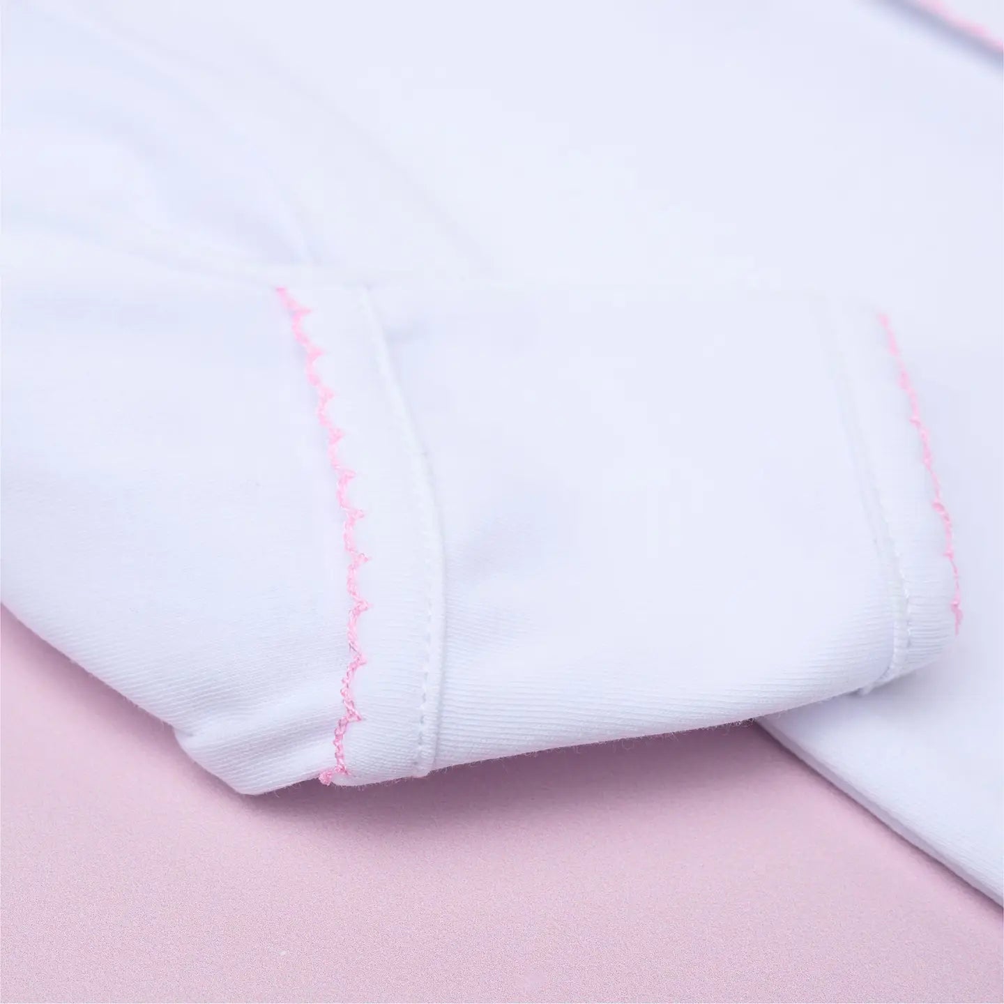 Welcome your little sister with the Magnolia Baby "Little Sister" Footie! This cozy sleeper is crafted from the softest Peruvian Pima cotton, ensuring gentle comfort for delicate skin. Hand-embroidered detailing adds a touch of sweetness, making it an ideal gift. The full-length design and snap closure provide warmth and easy diaper changes.
