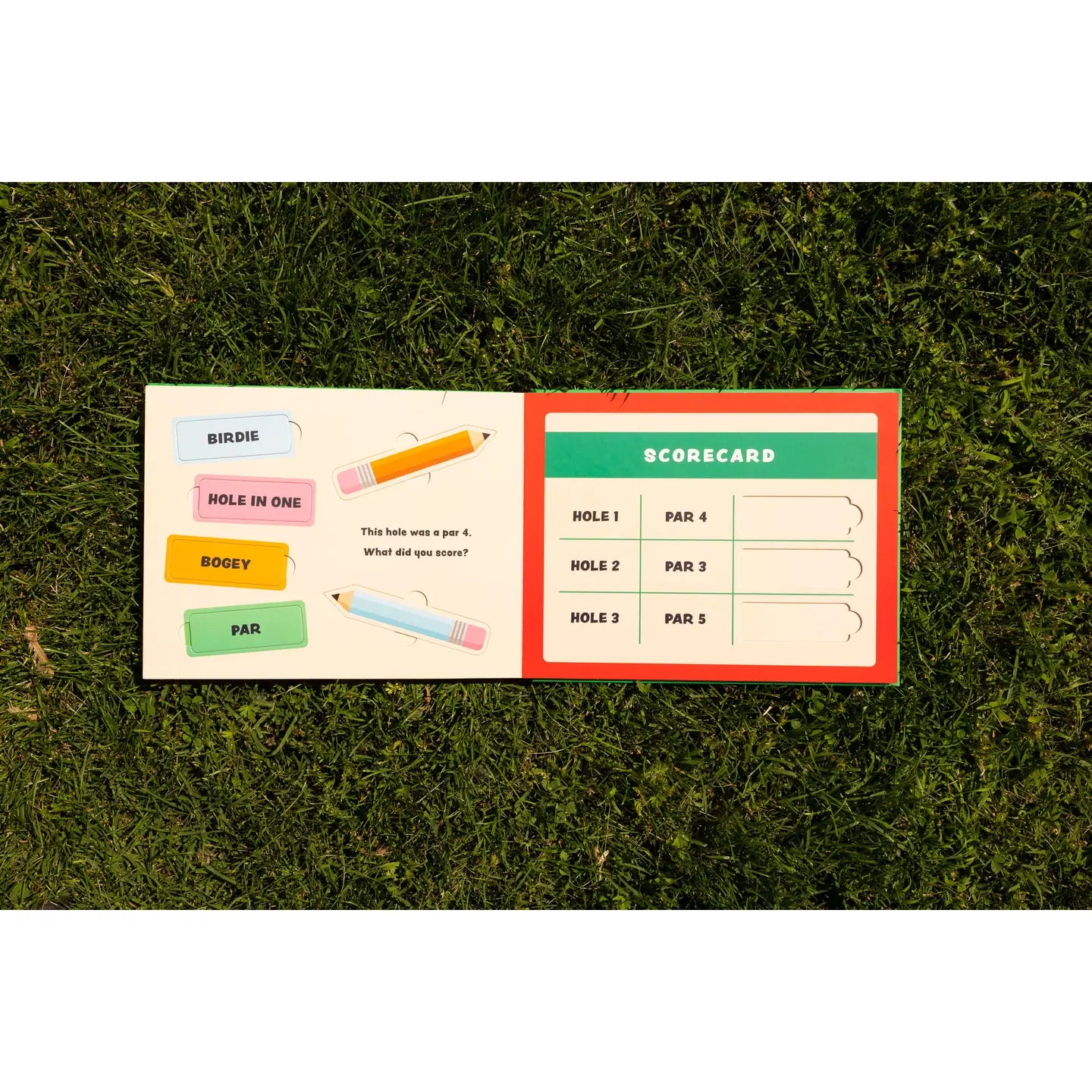 My First Golf Bag has everything young golfers need for a day on the course. Grab your tees, take a practice swing, tally up the score card, and more! This uniquely designed sturdy activity book will encourage creativity and hours of fun as kids learn about all of the game of golf. This interactive book features: Lift-the-flap peekaboo panels and removable cardboard cut-outs that pop up, including a putter, golf ball, tee, and scorecard A fold out fairway page to play a hole and try to avoid the sand traps Sturdy board book style format