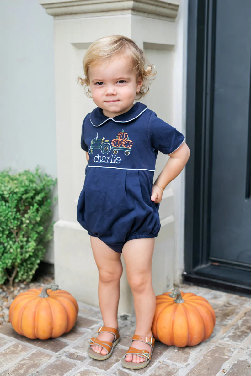 Chic, classic, and effortlessly adorable, this Palmer Navy Bubble is a timeless piece for little ones. Crafted from soft, high-quality fabric, this navy bubble romper is perfect for everyday wear or special occasions. It also looks extra sweet when personalized, making it a wonderful gift or keepsake. We monogram!