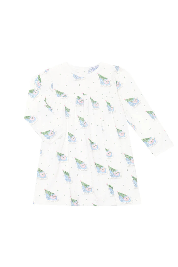 Celebrate the season in charming style with this soft, festive dress crafted from premium 100% Peruvian Pima cotton. Designed for all-day comfort, the Pink Merry Sleighs Playtime features a cheerful holiday sleigh print that is perfect for family gatherings, photos, or simply twirling through festive moments.