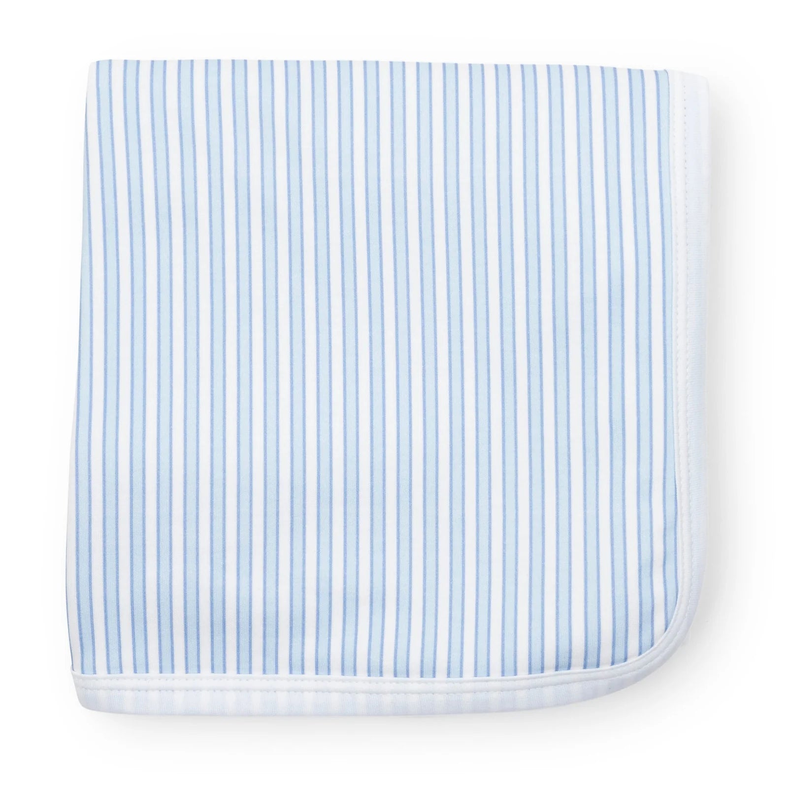 Soft enough for snuggles, refined enough for the nursery—the Plain Edge Classic Stripe Blanket features silky Pima cotton, crisp stripes, and a clean white frame for a timeless finish. Measures approximately 34″ × 34″, giving it generous coverage without being overly bulky.