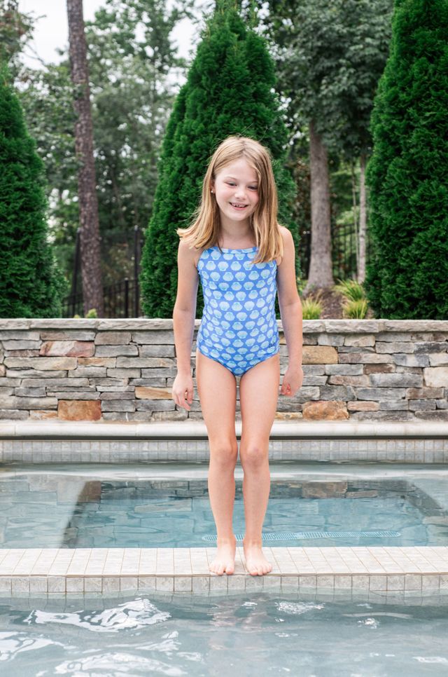 Make a splash in the PRODOH Girls' Spring Tides Bow Back One Piece Swimsuit — Marina Blue Seashells Print — UPF 50+ Fully Lined Swimwear. Designed for all-day water play, this swimsuit blends quick-dry comfort with just-right stretch and serious UPF 50+ sun protection. The crisscross back straps and sweet tacked bow detail add style that stays put, while full lining keeps her comfy from beach to pool.