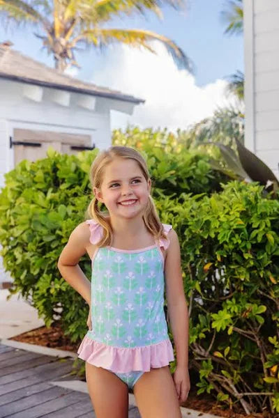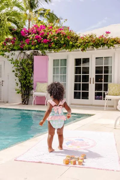 Sweet and sun-ready, the St. Lucia Swimsuit features charming ruffle details and UPF protection—perfect for your little lady’s summertime splash sessions.
