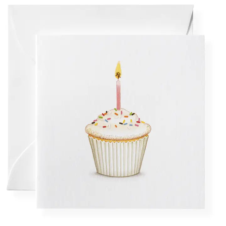 Send best wishes with this perfectly adorable box of hand-glittered cards featuring a cupcake. Book folded cards, blank on the inside. Paper color | white Envelope color | white Print process | full color. Embellishment | hand-glittered. Dimensions | 3 x 3 inches.
