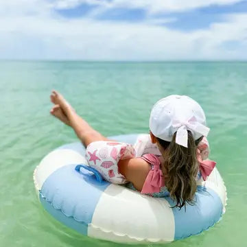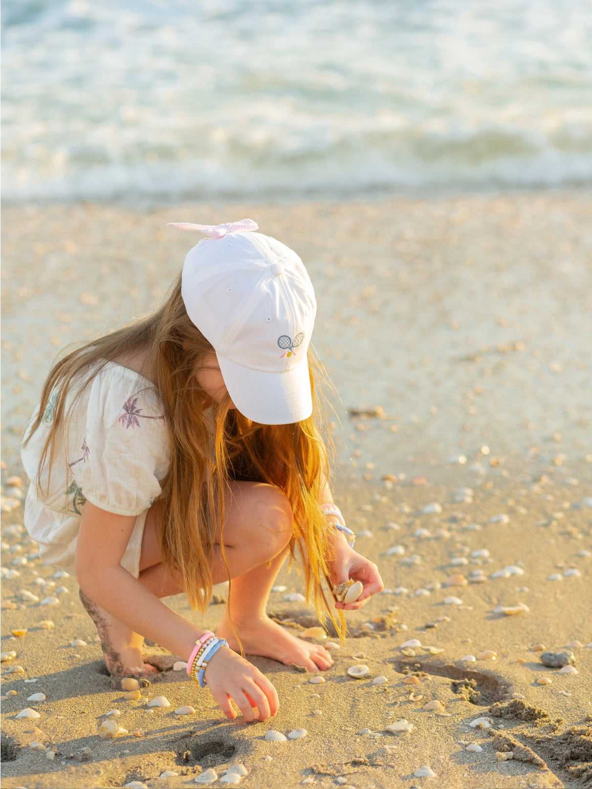 Serve up style with this Tennis Bow Baseball Hat. Cute, comfortable, and effortlessly sporty for all her adventures. Finished with an adorable pink/white seersucker bow.