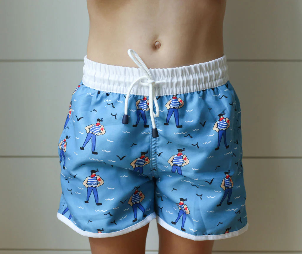 Ahoy, little adventurers! These swim trunks are perfect for summer escapades. Crafted from ultra-soft swim material with a comfortable mesh lining, these shorts feature a playful pirate print, functional pockets, and a drawstring waist for an adjustable fit. Designed with a generous fit, it's recommended to size down for the best comfort.