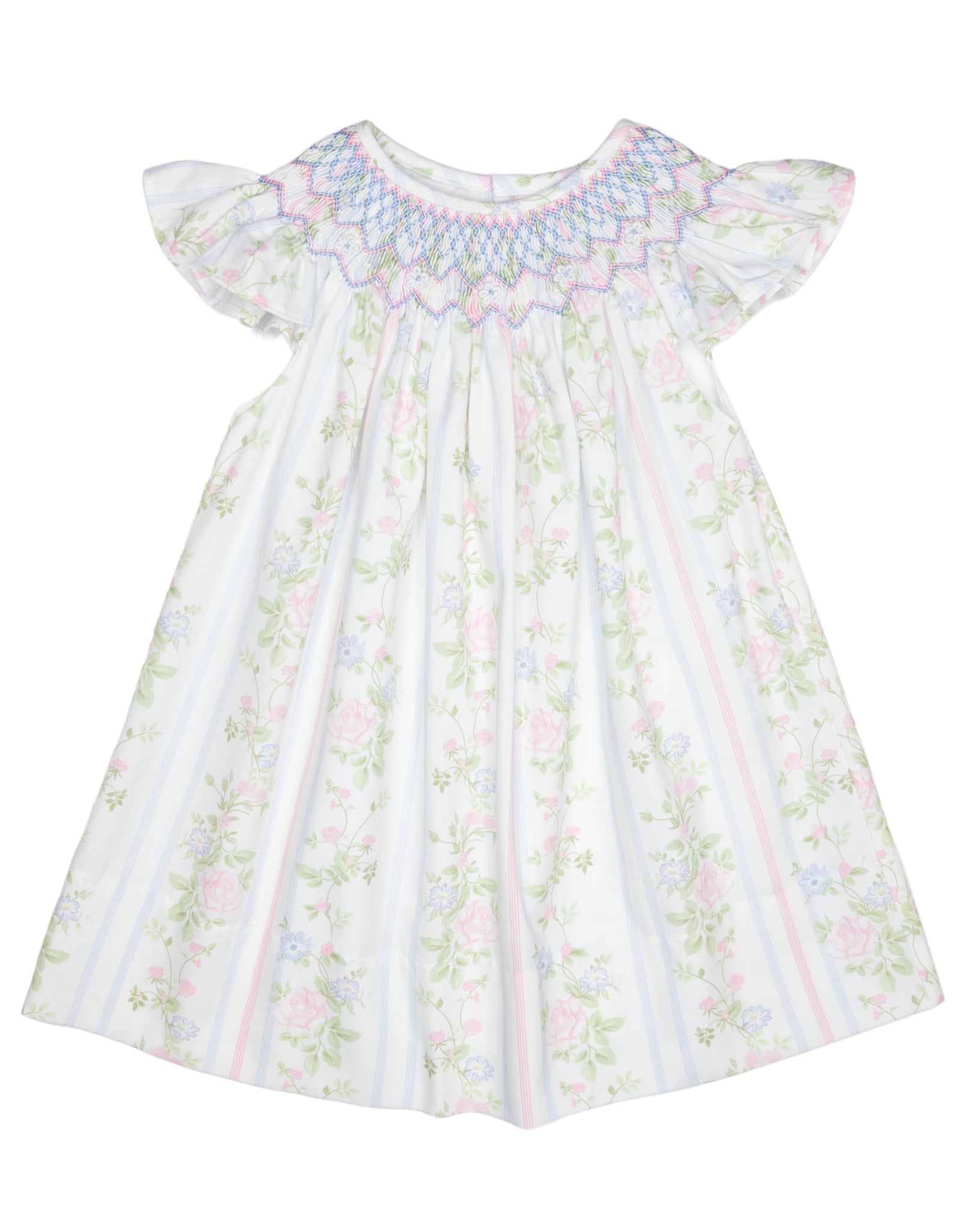 Romantic and timeless, this floral smocked dress features a delicate rose vine print with beautifully detailed smocking for a classic, heirloom-inspired look. Crafted from soft, lightweight fabric, it offers all-day comfort while keeping little ones perfectly polished. Ideal for special occasions, family photos, and springtime outings, this dress is as graceful as it is charming.